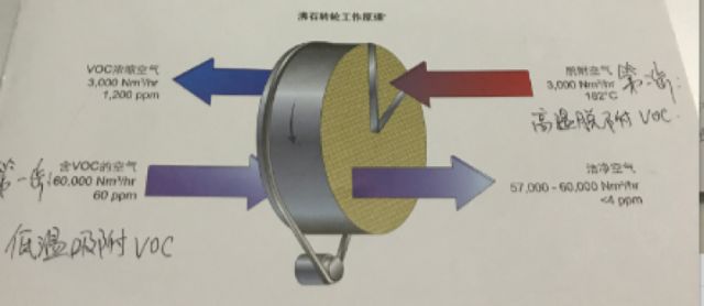 沸石濃縮轉(zhuǎn)輪系統(tǒng)的工作原理: